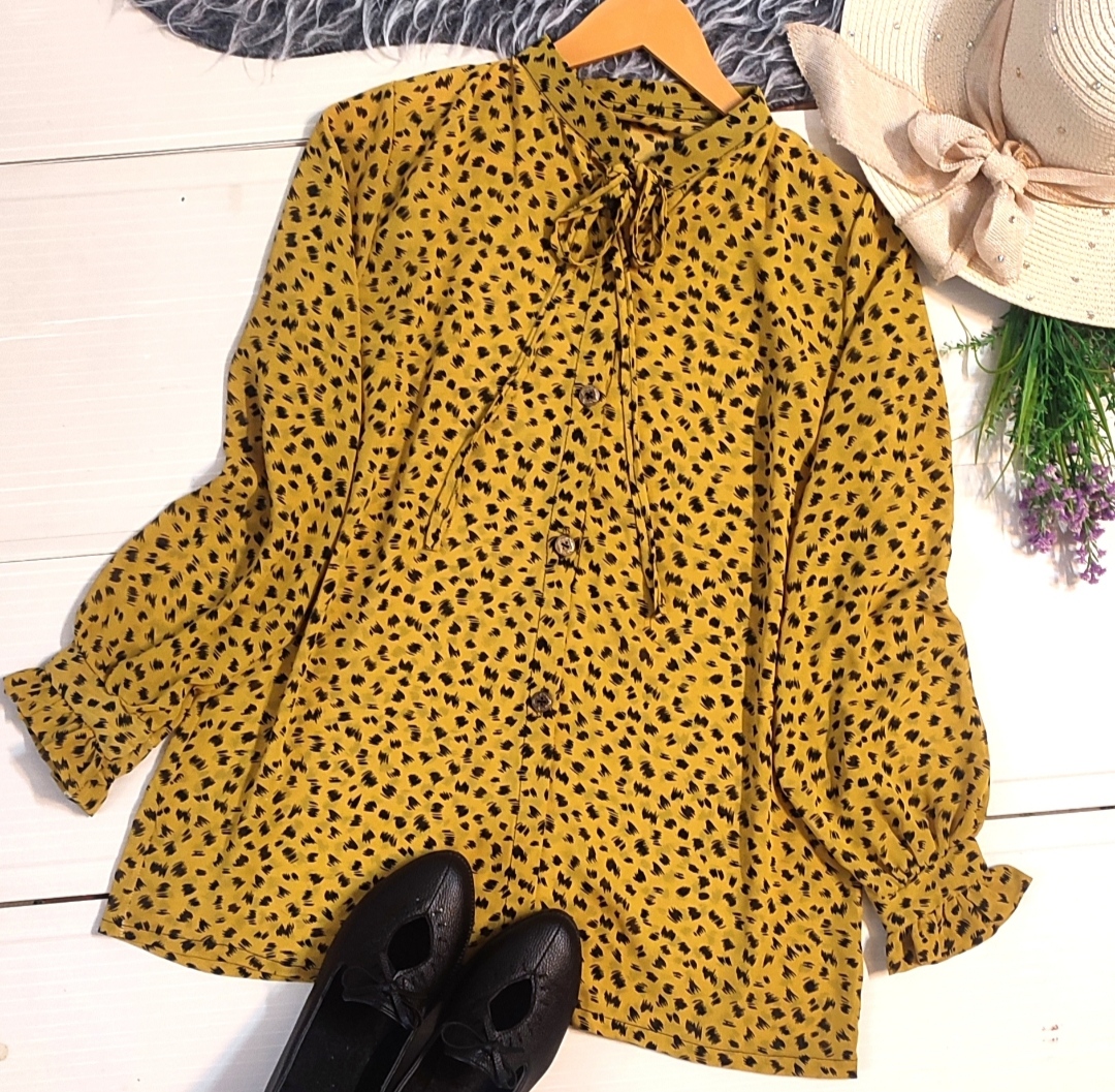 پارچه کرپ پلنگی خردلی شومیزی