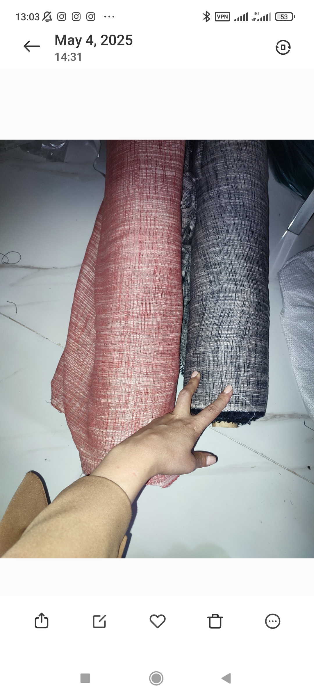 پارچه تابستانه و بسیار خنک هست، بدون غبرفت، عرض کار ۱۵۰.مناسب کفتان ، مانتو، شومیز، تونیک، پیراهن و... هست.اصلا بدن نمایی نداره . . بیشتر از ۵ متر لطفا واتساپ هماهنگ شود.۰۹۰۳۹۸۹۱۱۵۰